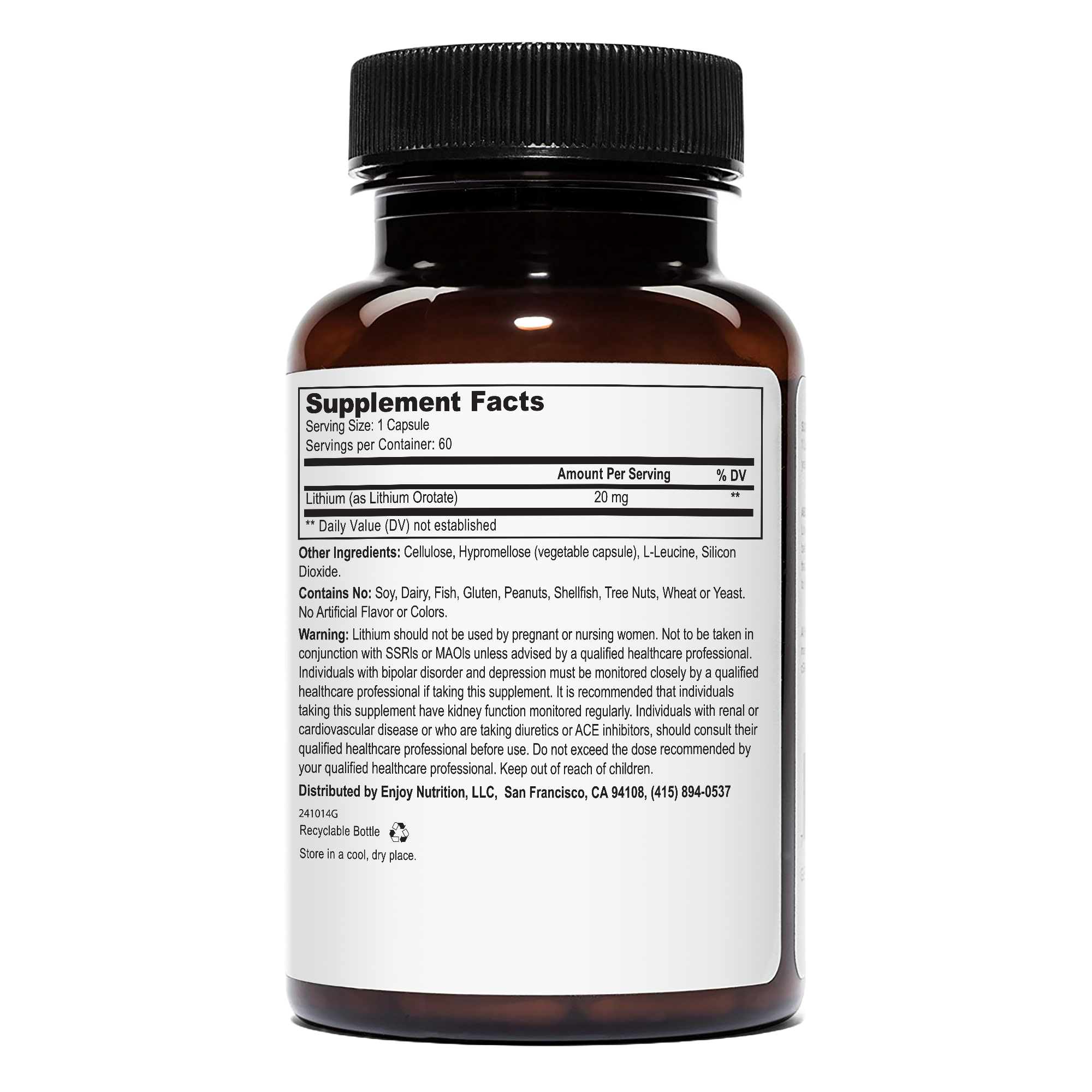 This formula combines lithium with orotic acid to form lithium orotate, a compound commonly used in dietary supplements. Each capsule provides a convenient way to incorporate lithium into a daily supplement routine.