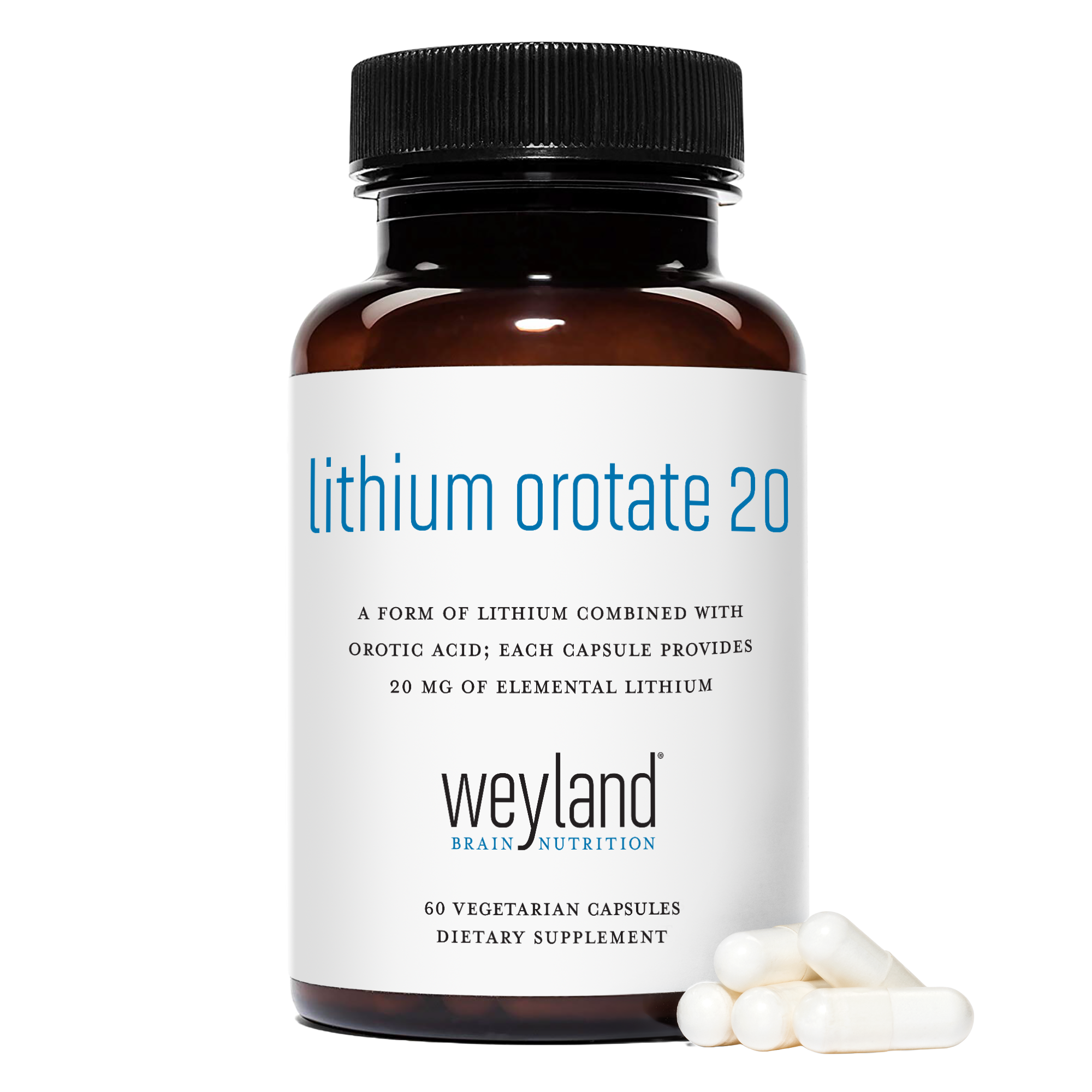 Weyland Lithium Orotate provides 20 mg of elemental lithium per vegetarian capsule. Lithium is a naturally occurring trace mineral found in small amounts in water, soil, and certain foods.