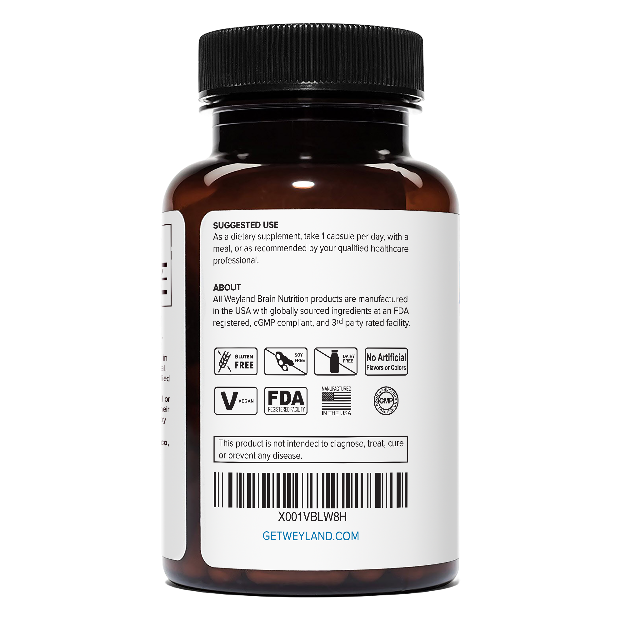 Weyland Brain Nutrition products are manufactured in the USA with globally sourced ingredients in an FDA-registered, cGMP-compliant facility and are third-party tested for quality.